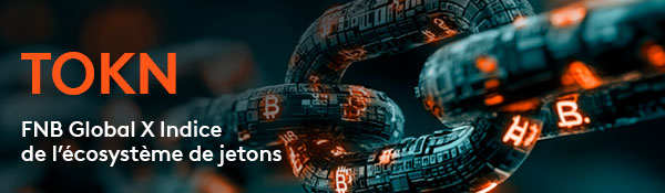 | FNB Global X Indice de l’écosystème de jetons | Dollar canadien | Parts non couvertes | TOKN | Indice Mirae Asset Stablecoins and Tokenization ($ CA) | TSX | 0.49% |