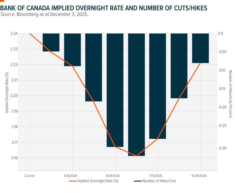 While the market is not expecting any further rate cuts from the Bank of Canada (BoC), that could change if economic conditions deteriorate meaningfully. The BoC remains ready to support the economy should overall growth remain low.