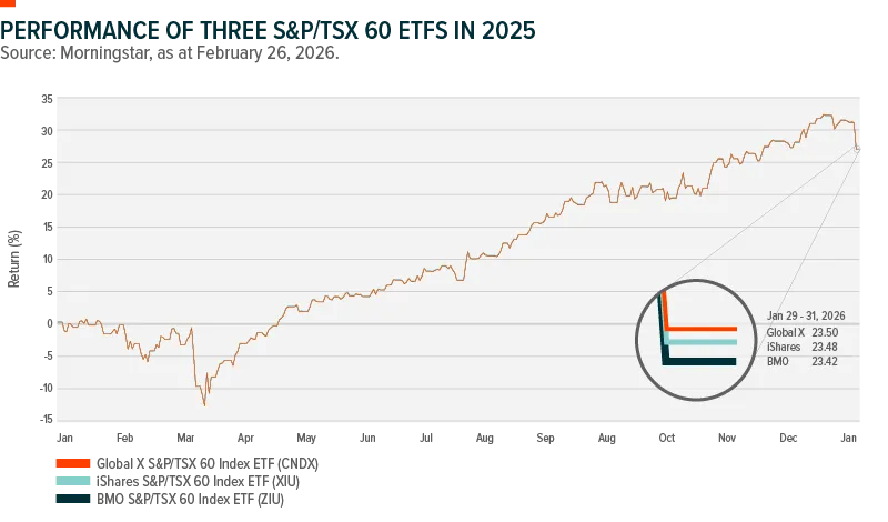Source: Websites of Global X ETFs Canada, BlackRock and BMO Global Asset Management as at February 27, 2026.