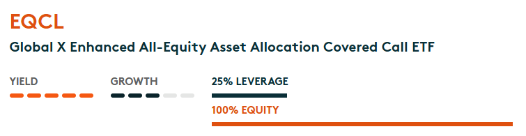 EQCL seeks to provide a combination of a high level of income and long-term capital growth, primarily by investing, directly or indirectly, in exchange traded funds that provide exposure to a globally diversified portfolio of equity securities. To generate premiums, EQCL will be exposed to a dynamic covered call option writing program.